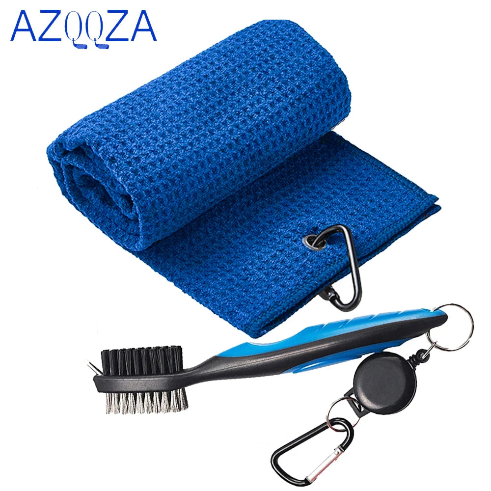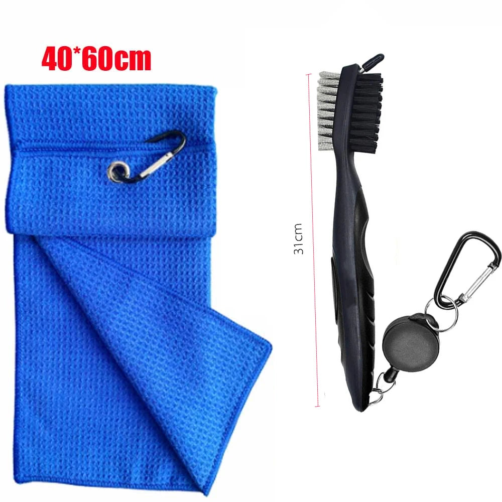 Premium Golf Towel & Club Cleaning Brush Kit | Tri-Fold Waffle Golf Towel & Groove Cleaner Brush | Essential Golf Accessory Set